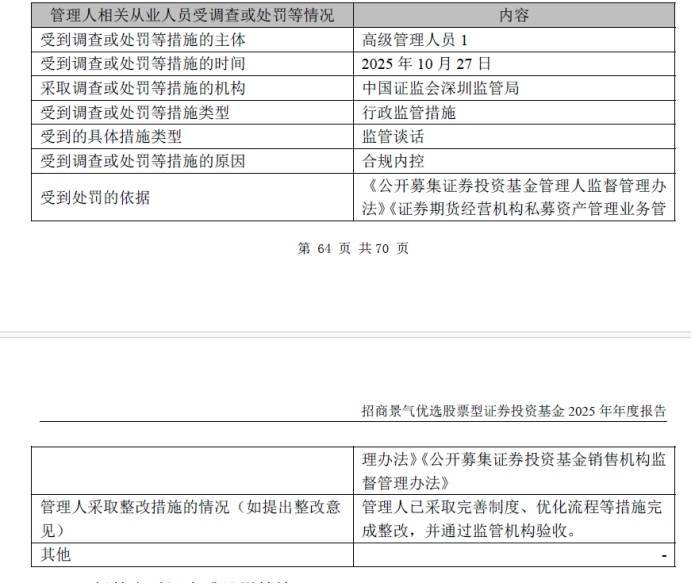 招商基金在公告中同时披露,管理人已采取完善制度、优化流程等措施完成整改,并通过监管机构验收。